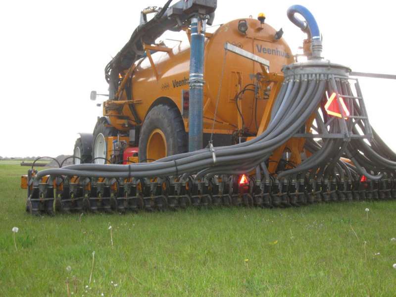Drijfmest kan ook met behulp van een sleepslangbemester aangewend worden.