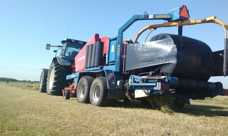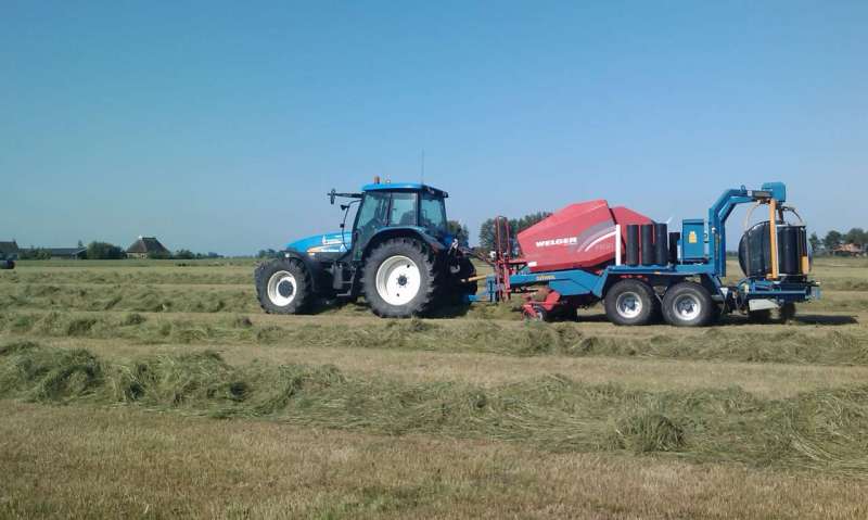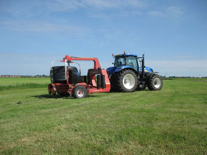 Op dit moment beschikken wij over een Welger rondebalenpers (1.20m¹ breed, Ø1.25m¹, snij-inrichting met maximaal 25 messen) in combinatie met een Goweil wikkelaar. De balen worden gewikkeld met zwarte of groene folie standaard in 6 lagen (meer of minder lagen in overleg mogelijk).